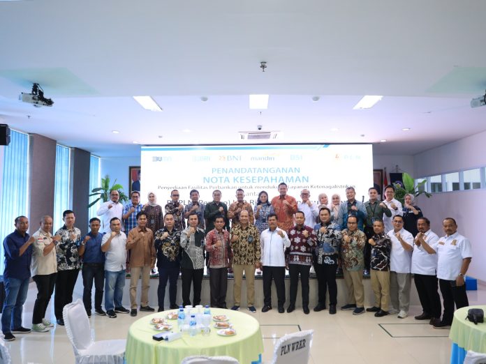 vokalriau.com-Pekanbaru – PT PLN (Persero) Unit Induk Distribusi Riau dan Kepulauan Riau (UIDRKR) berkolaborasi bersama Bank Mandiri, BRI, BNI dan BSI dalam penyediaan fasilitas perbankan untuk mendukung layanan ketenagalistrikan di Riau. Kerja sama PLN bersama Perbankan ini diwujudkan melalui penandatanganan nota kesepahaman yang dilaksanakan di Kantor PLN UID RKR pada Selasa (16/7).